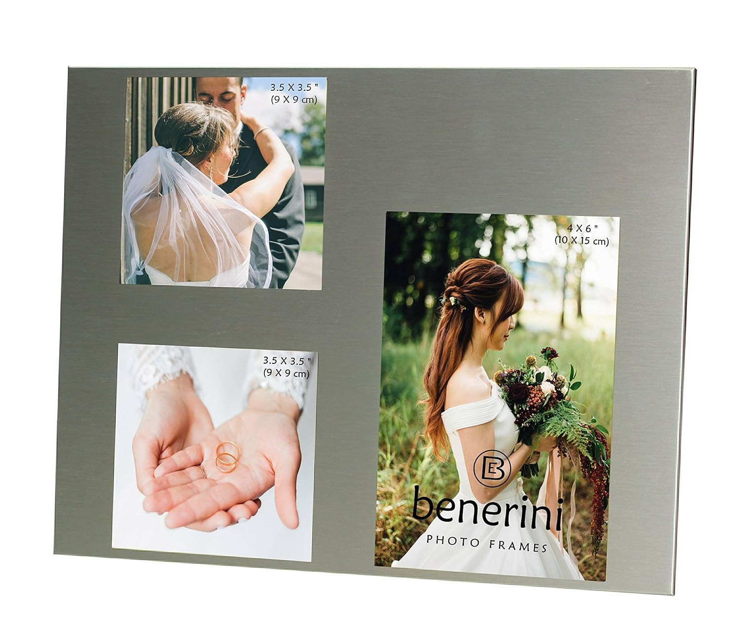 Benerini 3 Picture Brushed Aluminum Satin Silver Color Photo Frame Takes 1 Photo Of 4 X 6 Inches 10 X 15 Cm 2 Photos Of 3 5 X 3 5 Inches 9 X 9 Cm By Benerini Amazon In Home Kitchen