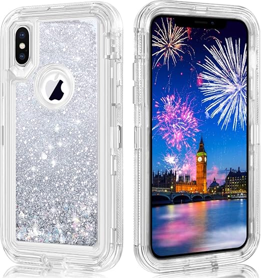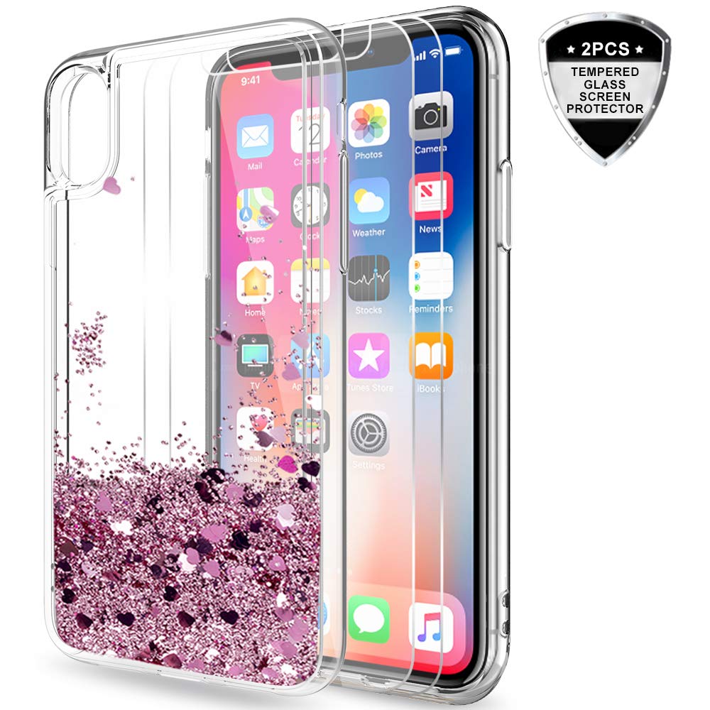 Amazon Com Leyi Iphone X Case Iphone Xs Case With Tempered Glass Screen Protector 2 Pack For Girls Women Glitter Liquid Cute Clear Tpu Phone Case For Apple Iphone X Iphone Xs Iphone 10 Zx