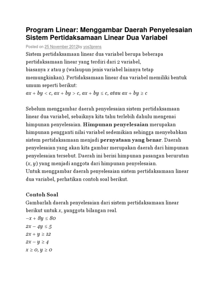 Program Linear Menggambar Daerah Penyelesaian Sistem Pertidaksamaan Linear Dua Variabel Pendidikan Matematika