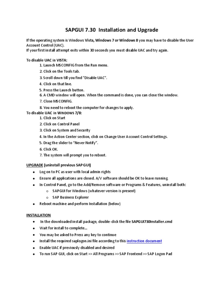 To Install Sap Gui For Windows 7 Web Viewbefore You Commence The Installation Of Sap Gui 7 50
