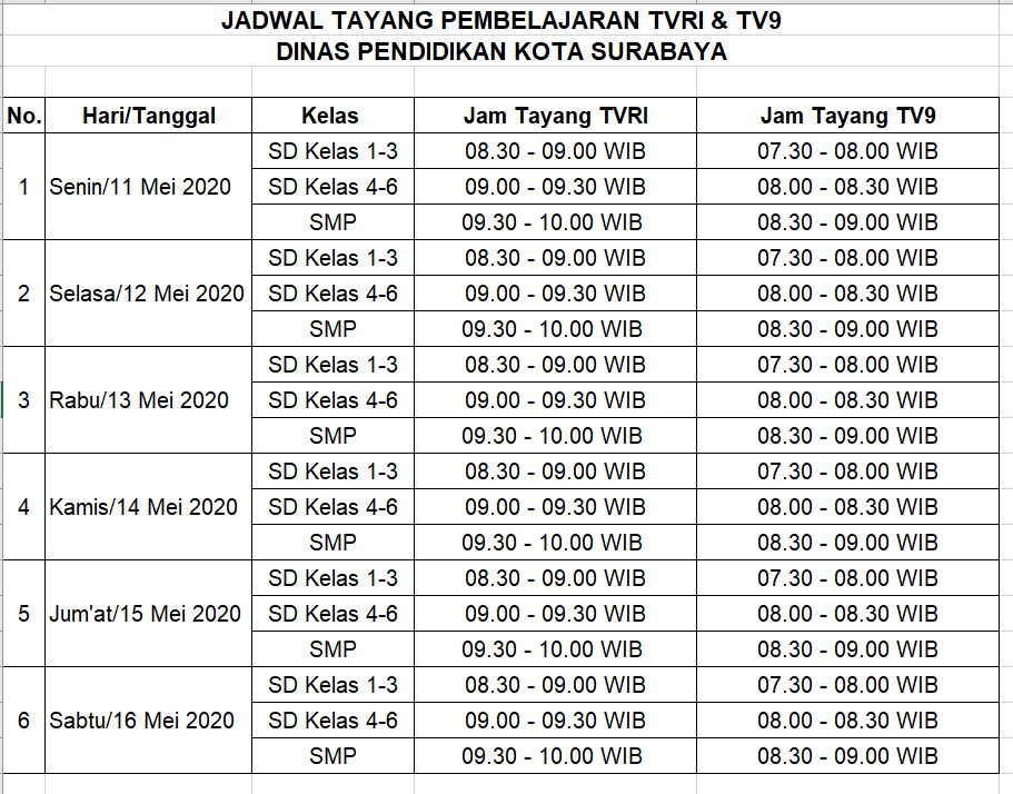 Sapawarga Kota Sby On Twitter Ini Dia Jadwal Tv Pendidikan Untuk Hari Kamis 6 Agustus 2020 Saksikan Di Sbotv Tetap Semangat Belajar Di Rumah Ya Adek2 Https T Co 4dvhnexjd1