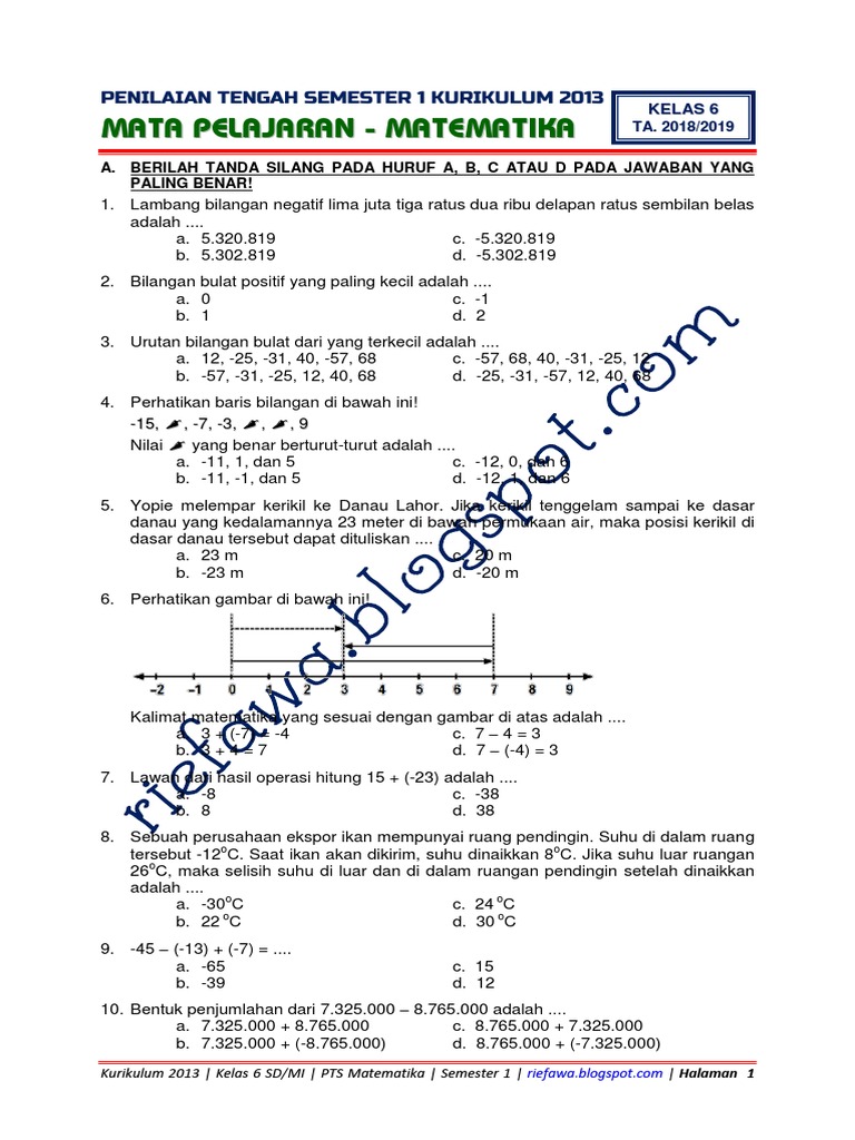 Soal Uts Pts Matematika Kelas 6 Semester 1 Kurikulum 2013 Revisi 2018 Juragan Les